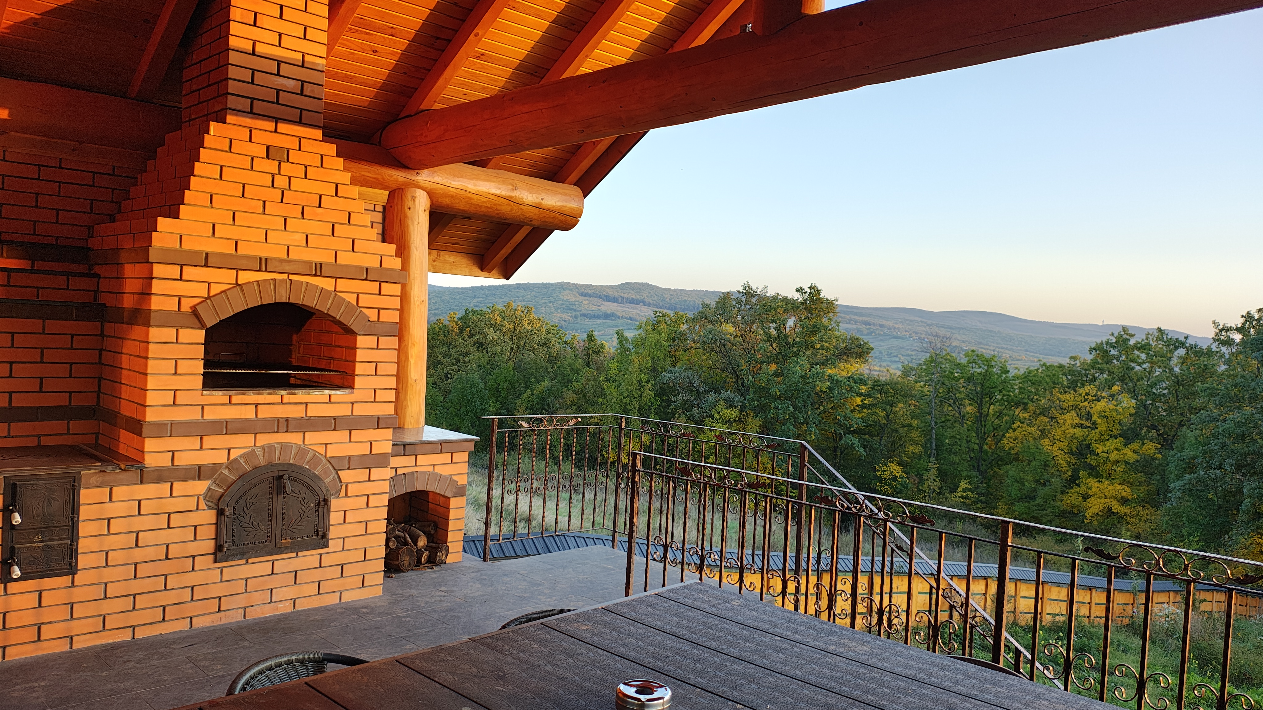 - Terasă panoramică cu grătar barbeque și cuptor pe lemne — atmosfera ideală pentru un festin în aer liber.
